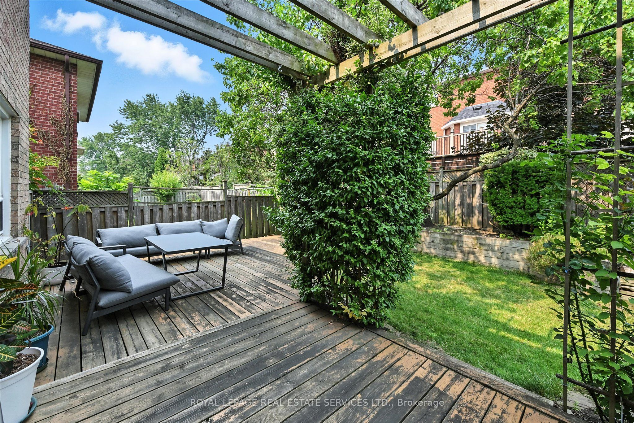 The fully fenced backyard is an entertainer's dream, boasting a custom deck with a pergola, lush gardens, and mature privacy-enhancing trees.Additional highlights include handscraped hardwood on the upper level, a hardwood staircase, main floor laundry, and appealing interlock front and side walkways.